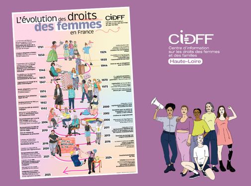 Découvrez l'affiche créée par le CIDFF sur l’évolution des droits des femmes en France reprenant les dates importants.