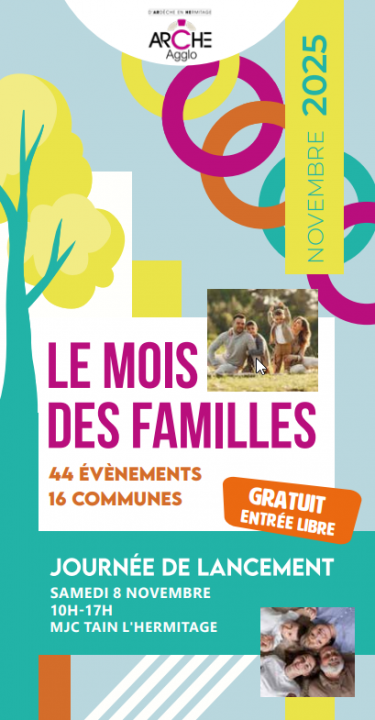 Le samedi 08 novembre, c'est la journée de lancement du Mois des Familles, de 10h à 17h à la MJC de Tain l'Hermitage. C'est 44 évènements gratuits dans 16 communes.