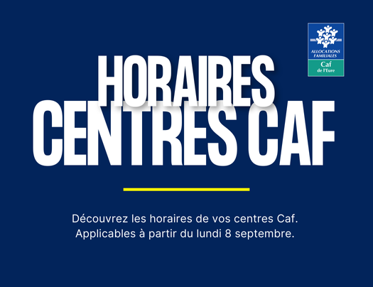 Découvrez les horaires de vos centres Caf. Applicables à partir du lundi 8 septembre.