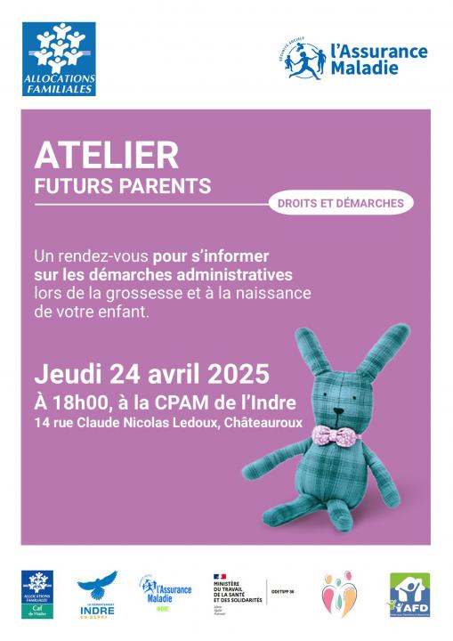 Atelier proposé en partenariat avec le Département de l’Indre, les associations « Parent’aise Bienveillante » et « Aide aux familles à Domicile » (AFD), le service de renseignement en droit du travail de la Direction Départementale de l’Emploi, du Travail, des Solidarités et de la Protection des Populations (DDETSPP).