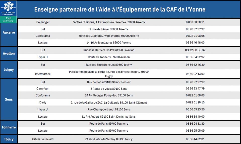 - L’ ne peut pas cumuler plusieurs aides à l'équipement de façon simultanée auprès de la CAF de l’Yonne
