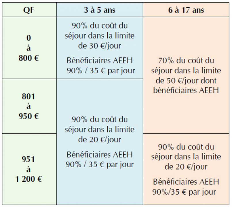 Le montant de l'aide est un pourcentage du coût de l’hébergement selon le Quotient Familial de la famille.