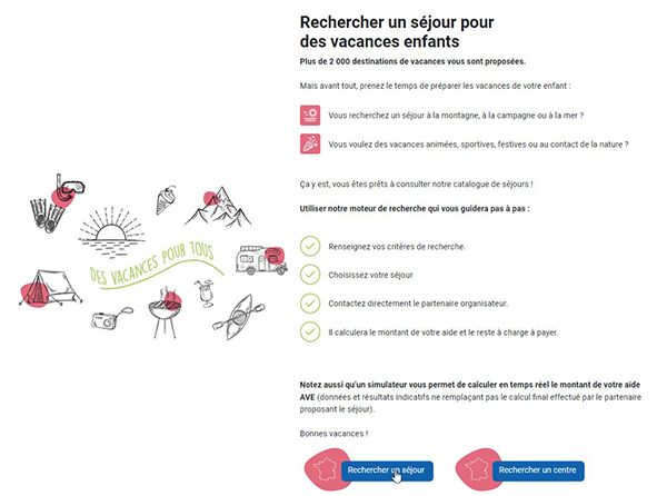 4. Puis en bas de la page, dans la partie «Rechercher un séjour pour des vacances enfants» cliquez sur «Rechercher un séjour».