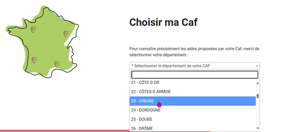 2. Une fois sur la page d'accueil du site vacaf.org, dans la rubrique « Choisir ma Caf », sélectionnez le département de votre Caf.