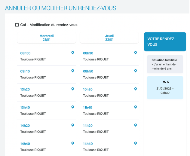 Un imprévu, un changement d’horaire ou besoin de reporter votre rendez-vous ? Afin de vous accompagner au mieux dans vos démarches, la Caf met à votre disposition un tutoriel pour annuler ou modifier votre entretien. Pensez à le faire le plus tôt possible.