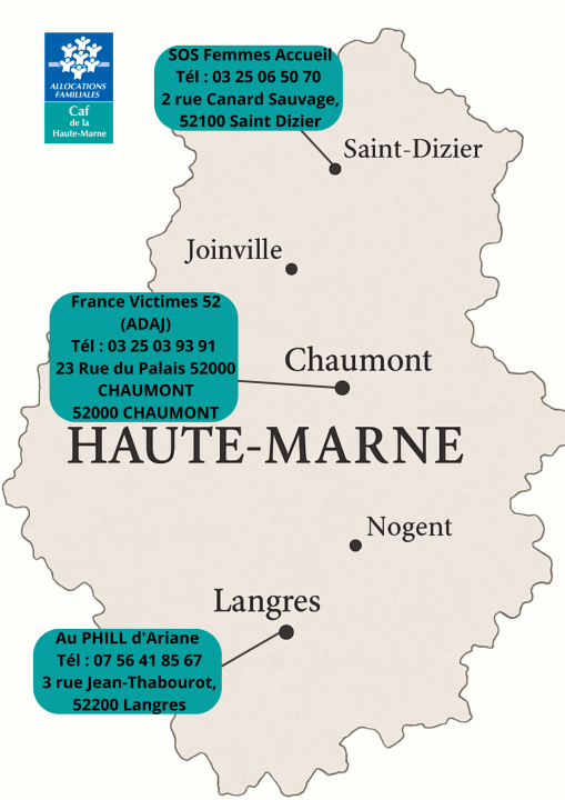 - CIDFF (centre d'information sur les droits des femmes et des familles) - 7 rue Fleming 52000 Chaumont - 03 25 02 07 02