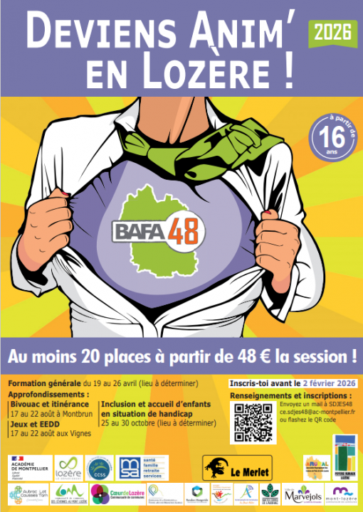 Le dispositif BAFA 48 initié par le Service départemental à la jeunesse, à l'engagement et aux sports (SDJES), et soutenu par la Caisse commune de Sécurité sociale de la Lozère (CCSS), la Mutualité Sociale Agricole (MSA), le Département et les Communautés de Communes de la Lozère permet une prise en charge importante du parcours de formation.