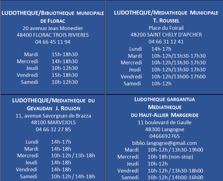 Retrouvez les quatre ludothèques de Lozère