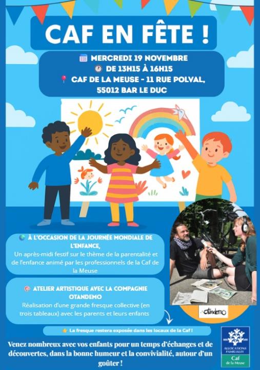 À l’occasion de la Journée mondiale de l’Enfance, la CAF de la Meuse vous invite à partager un moment convivial et créatif autour des thèmes de la Parentalité et de l’Enfance.