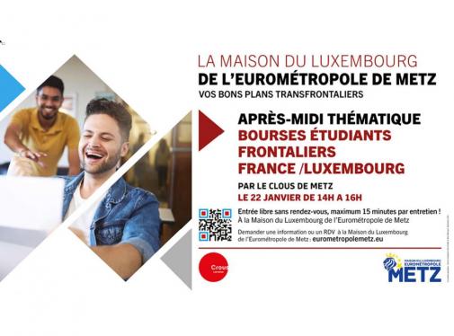 La Maison du Luxembourg de l'Eurométropole de Metz en partenariat avec le CLOUS de Metz propose un temps d'informations dédié aux étudiants frontaliers :