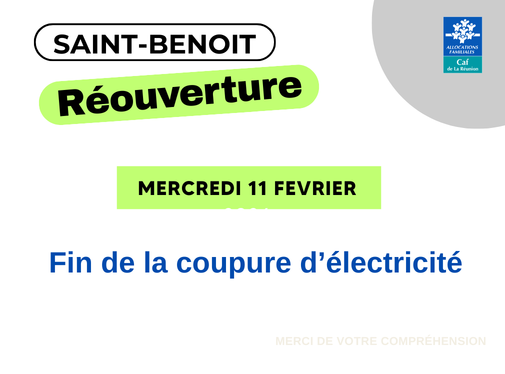 𝗙𝗶𝗻 𝗱𝗲 𝗹𝗮 𝗽𝗮𝗻𝗻𝗲 𝗱'𝗲́𝗹𝗲𝗰𝘁𝗿𝗶𝗰𝗶𝘁𝗲́ => Notre site de 𝗦𝗮𝗶𝗻𝘁-𝗕𝗲𝗻𝗼𝗶̂𝘁 sera 𝗼𝘂𝘃𝗲𝗿𝘁 aujourd'hui à ces horaires habituels.