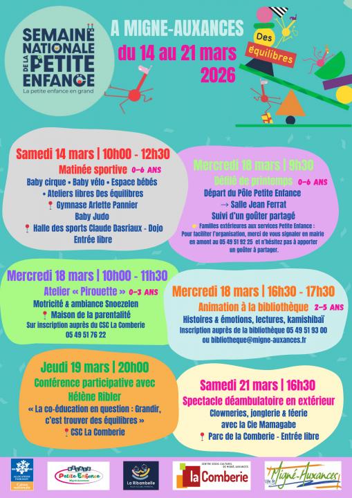 Migné-Auxances Hall des sports, bibliothèque, maison de la parentalité, centre socioculturel, parc | du 14 au 21 mars | 6 animations gratuites. Le 19 mars, conférence sur la co-éducation "Grandir, c'est trouver des équilibres" au centre socioculturel de la Comberie à 20 h |
