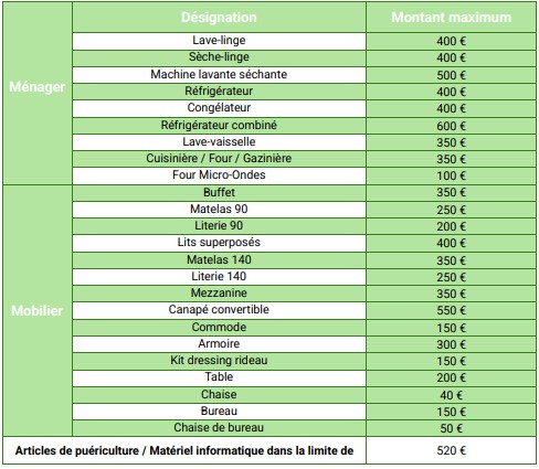 Liste du matériel relevant d'un prêt ménager mobilier 2026