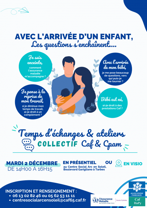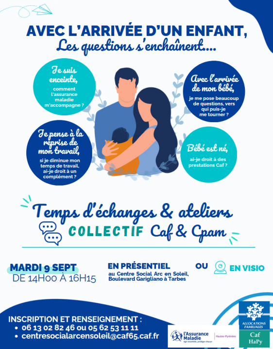 La Caf et la Cpam HaPy vous invitent à un temps d’échanges et à des ateliers collectifs pour vous accompagner sur :