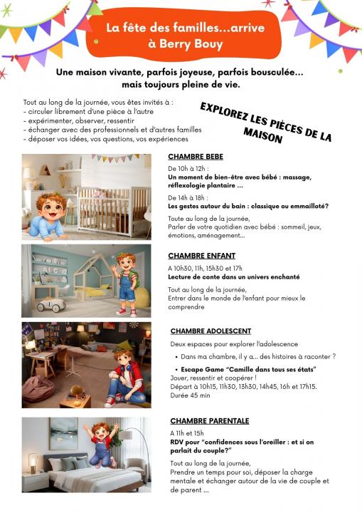 Tout au long de la journée vous êtes invités à circuler librement d'une pièce à l'autre, expérimenter, observer, ressentir, échanger avec des professionnels et d'autres familles, déposer vos idées, questions et expériences.