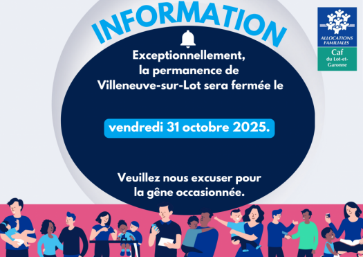 Exceptionnellement, l'accueil de votre Caf à Agen et la permanence de Villeneuve/Lot
