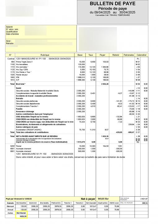 Pour vous aider à déclarer correctement le , vous trouverez ci-dessous des exemples de bulletins de salaire indiquant précisément où repérer le montant à déclarer :