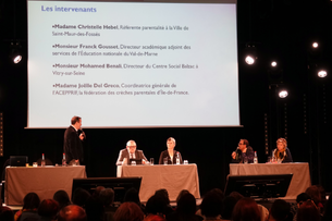 Regards croisés autour des grands enjeux du sdsf, avec les témoignages de Christelle Hebel, référente parentalité à la ville de Saint-Maur-des-Fossés, Franck Gousset directeur académique adjoint à l’Éducation nationale, Mohamed Benali, directeur du centre social Balzac à Vitry-sur-Seine et Joëlle Del Greco, coordinatrice générale de l’Acepprif ;