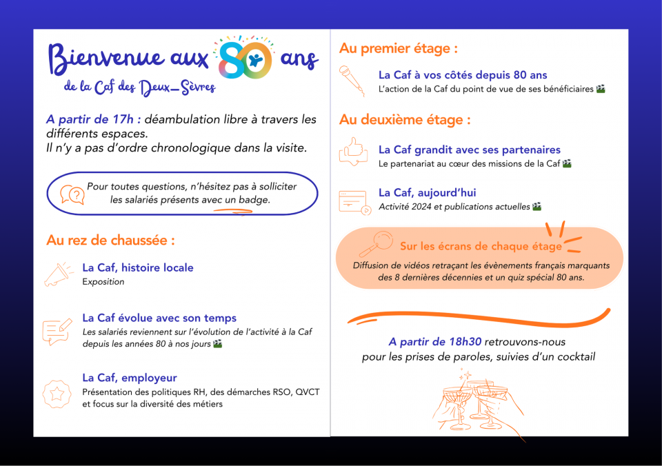 Cette soirée a permis de retracer l’histoire de la Caf des Deux-Sèvres depuis sa création, à travers plusieurs animations destinées à mettre en valeur son évolution, ses missions et les grandes marquantes de ces huit décennies au service des familles.