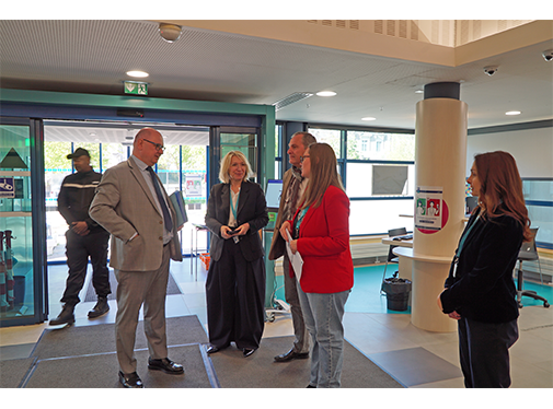 La visite a débuté par une immersion au sein de l’accueil, au cours de laquelle la responsable de la relation de service a détaillé les modalités de fonctionnement, les parcours usagers ainsi que les enjeux liés à l’accessibilité et à la qualité de service.