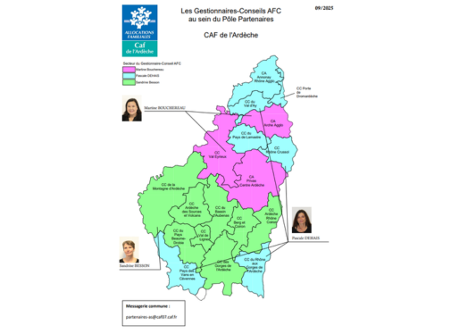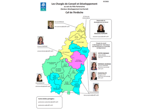 Caf de l'Ardèche - Carte - Les Chargés de Conseil et Développement au sein du Pôle Partenaires (Secteur développement territorial)
