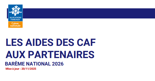 Les Caf accordent des aides à leurs partenaires afin de participer au financement des équipements et services à destination des familles. Ce barème national s’applique sur l’ensemble du territoire et peut être complété le système d’information de la Cnaf sur la base des principaux plafonds et des taux de prestation de service présentés.