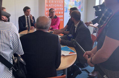 Nicolas Grivel, DG de la Cnaf, présente la COG Visite de Gabriel Attal à la CNAF à des journalistes de l'AJIS