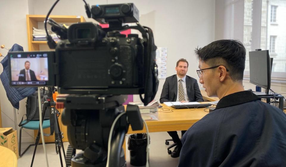 Olivier Corbobesse, directeur de la MREIC, a présenté le fonctionnement des Caf à la chaine de télévision coréenne CBS