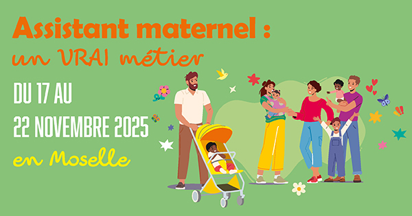 Du 17 au 22 novembre 2025, les Relais petite enfance de Moselle proposent 33 actions sur leur territoire d'intervention à l'attention des parents de jeunes enfants, des futurs parents, des assistants maternels en exercice et de toute personne curieuse d'en savoir plus sur le métier d'assistant maternel.