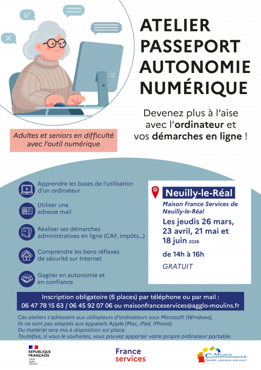 Inscriptions📞 Par téléphone : 06 47 78 15 63 ou 06 45 92 07 06 Par mail : maisonfranceservices@agglo-moulins.fr