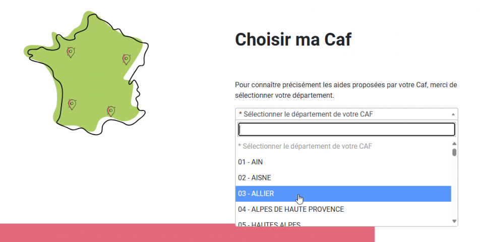 Une fois sur la page d'accueil du site vacaf.org, dans la rubrique "Choisir ma Caf", sélectionnez le département de votre Caf.