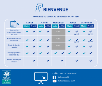 Horaires d'ouverture de la CAF