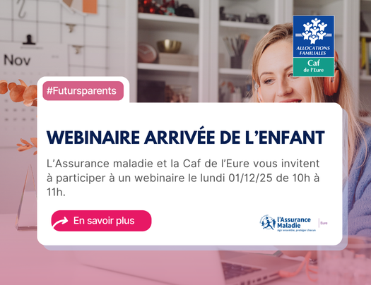 L’arrivée d’un enfant soulève beaucoup de questions… Afin de vous accompagner au mieux durant votre grossesse, l’Assurance maladie et la Caf de l'Eure vous invitent à participer à un webinaire.