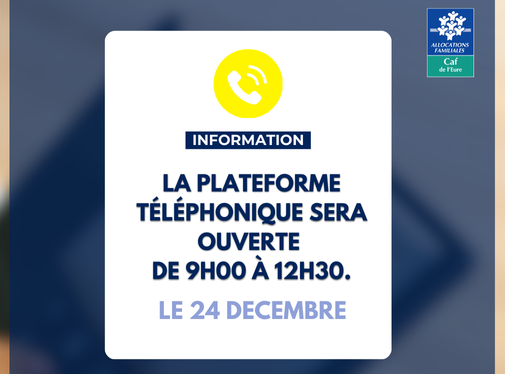 Le 24 décembre, la plateforme téléphonique sera ouverte de 9h00 à 12h30.