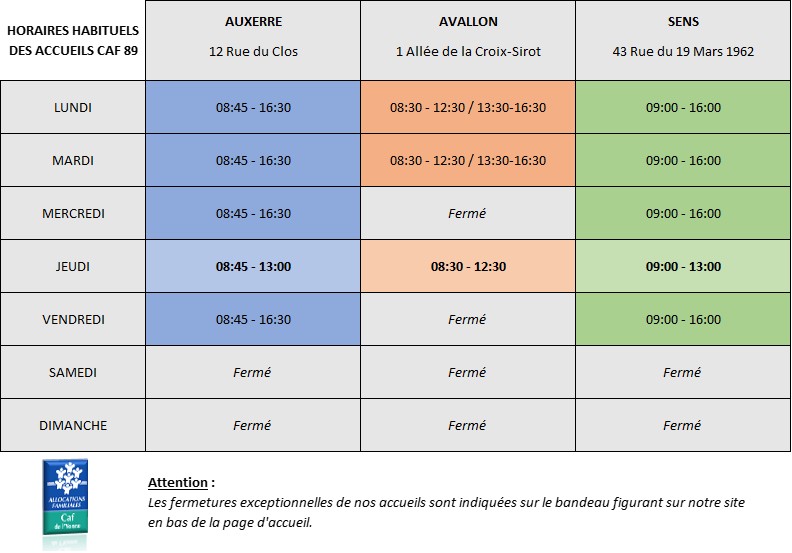 Rappel :Les accueils de la Caf à AUXERRE et SENS seront fermés tous les jeudis, jusqu'au 31 décembre 2025.