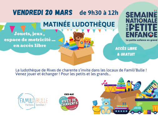 Gérée par la Caf et co-animée avec le Ccas d'Angoulême, Famili'Bulle est un projet partenarial (État, Caf, Msa, Conseil départemental, Éducation nationale, Udaf) qui résulte d'une étude menée sur les besoins et attentes des parents.