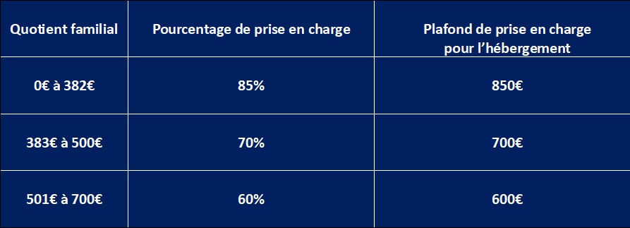 Le montant de la prise en charge est fixé en fonction du quotient familial et de la composition de la famille.