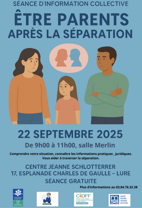 Gratuite, elle est ouverte à tous et toutes sans inscription. Elle a pour objectif d’aborder les conséquences psycho-sociales et juridiques de la séparation et de vous accompagner dans cette période de transition.