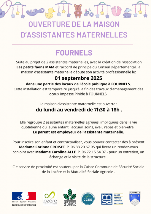 Elle permettra aux familles de Fournels et des environs de bénéficier d’un service de proximité, encadré par des professionnelles qualifiées.