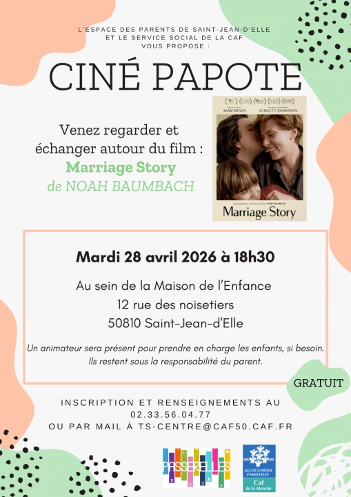 Les travailleurs sociaux de la CAF de la Manche, en partenariat avec la référente parentalité de l'espace des parents de St Jean d'Elle vous proposent un nouveau Ciné papote.