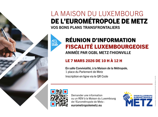 La Maison du Luxembourg de l'Eurométropole de Metz, en partenariat avec l’OGBL Metz-Thionville, propose une réunion d'informations dédiée aux travailleurs frontaliers sur la fiscalité luxembourgeoise :