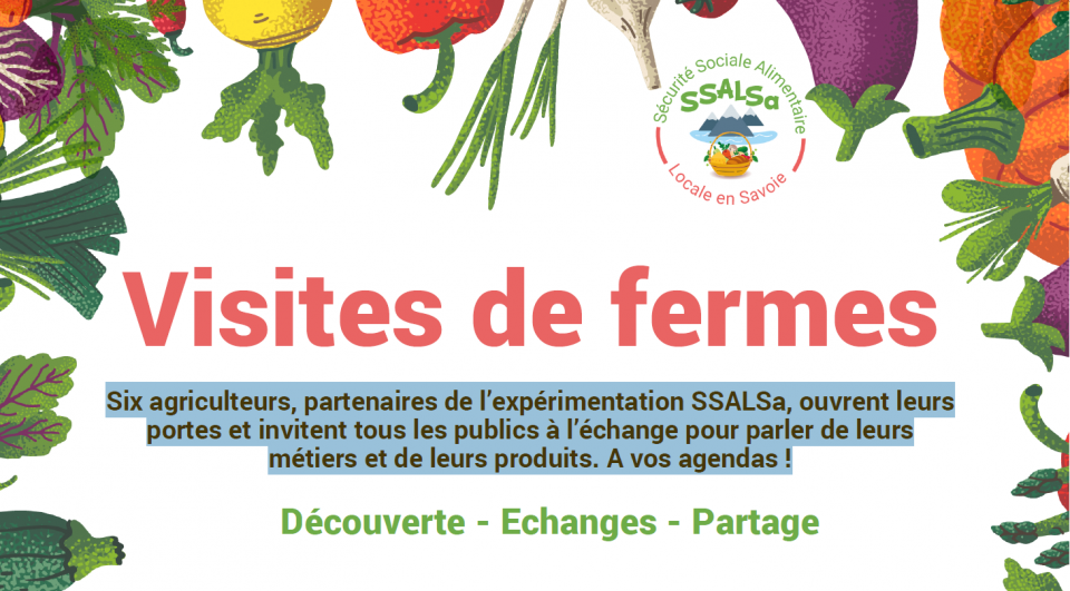 La Caf finance l'expérimentation Sécurité sociale alimentaire locale en Savoie et en partenariat avec la MSA, six agriculteurs, partenaires de l’expérimentation SSALSa, ouvrent leurs portes et invitent tous les publics à l’échange pour parler de leurs métiers et de leurs produits. A vos agendas !