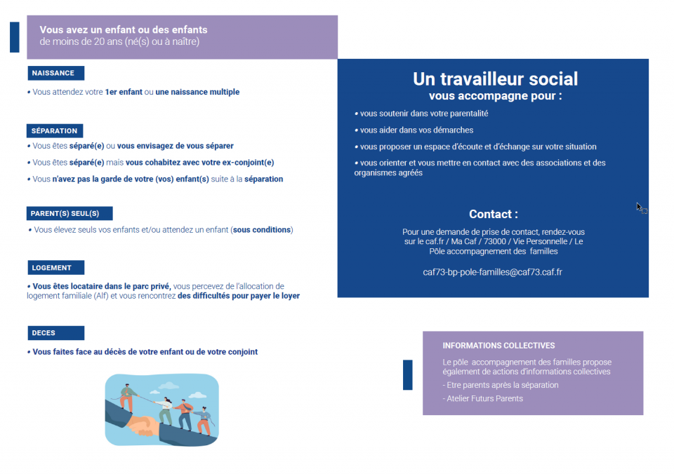 A chaque étape de votre vie, dans les moments difficiles ou pour faire face à certains choix liés aux événements familiaux, vous pouvez compter sur la présence du Pôle d'accompagnement des familles.