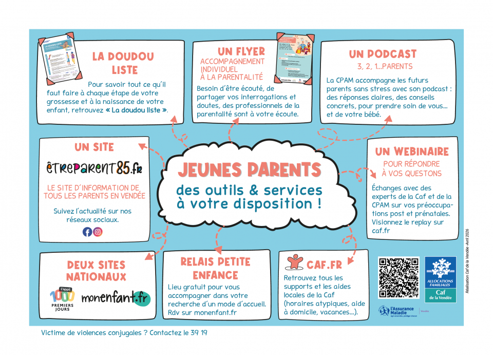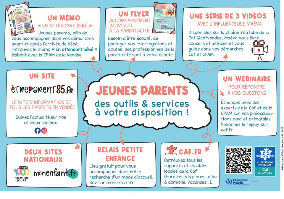 - etreparent85.fr : site présentant l'ensemble des actions, des aides et services en Vendée pour les parents. Une bibliographie pour les enfants et un agenda d’activités à proximité de chez vous sont également proposés.