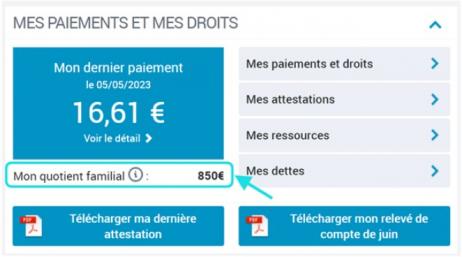 Le montant de votre QF est indiqué dans votre espace Mon Compte :