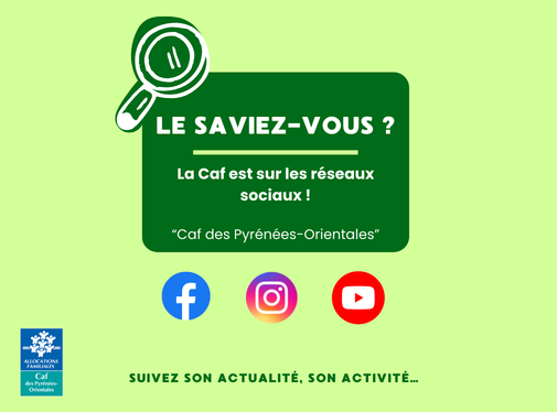 La Caf des Pyrénées-Orientales est présente sur Facebook, Instagram et YouTube pour mieux vous informer.