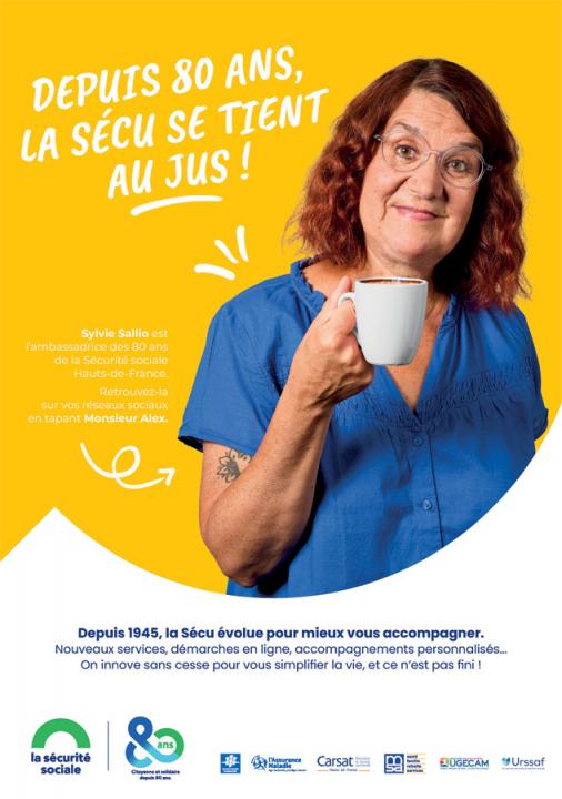 Pour incarner cette campagne, une ambassadrice locale populaire sur les réseaux sociaux prête son image à la Sécurité sociale : Sylvie Sallio (maman de @MonsieurAlexOff, créateur de contenus bien de chez nous) a prêté son image à la Sécurité sociale.