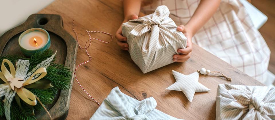 Côté papier cadeau, vous pouvez troquer le plastique contre le furoshiki, un emballage en tissu réutilisable, ou de jolis pochons. Et si un papier est encore en bon état, vous pouvez le garder pour l’année prochaine : c’est écologique et malin !