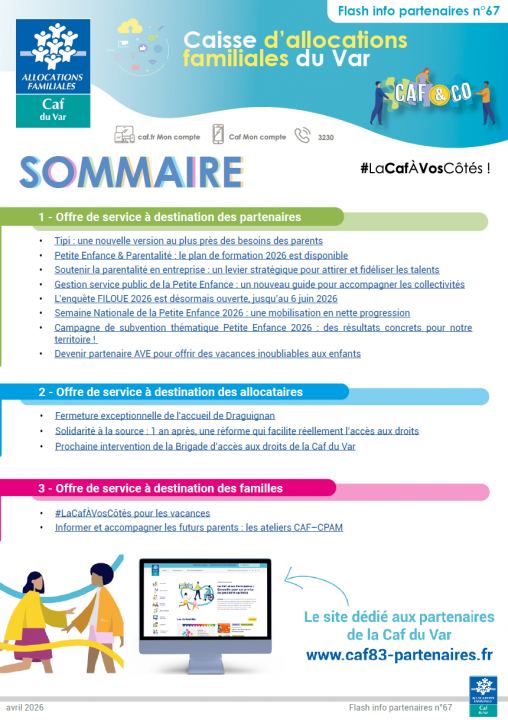 Retrouvez toutes les actualités de la Caf du Var dans le Flash Info Partenaires d'avril 2026.