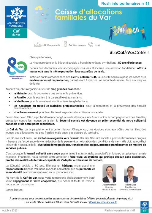 Retrouvez toutes les actualités de la Caf du Var dans le Flash Info Partenaires d'octobre 2025.